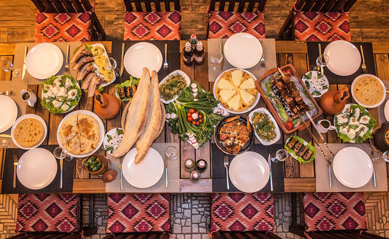 Помимо хинкали, в меню представлены хачапури различных региональных вариаций, ароматные супы, блюда на мангале, закуски из свежих овощей, соусы и традиционная выпечка. Важную роль играют специи и зелень, которые придают блюдам характерную выразительность. При этом кухня остаётся понятной и адаптированной для широкой аудитории.